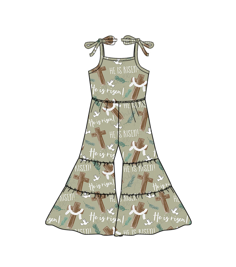 Baby Girls Easter He Is Risen Straps Bell Pants Jumpsuits Preorder(moq 5)