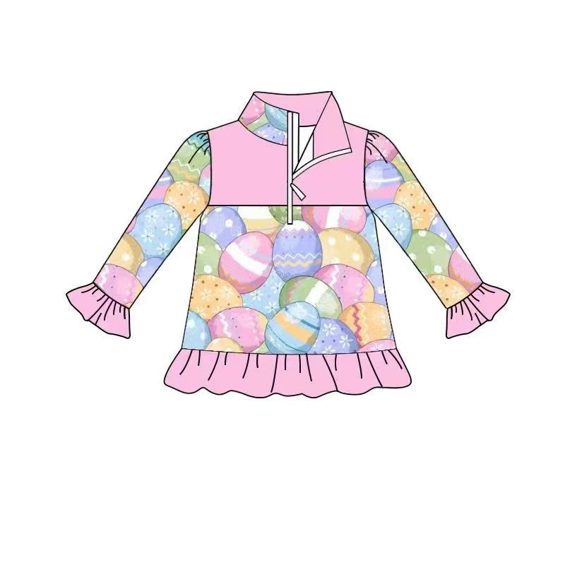 Baby Girls Easter Pink Eggs Ruffle Pullover Tops Preorder(moq 5)