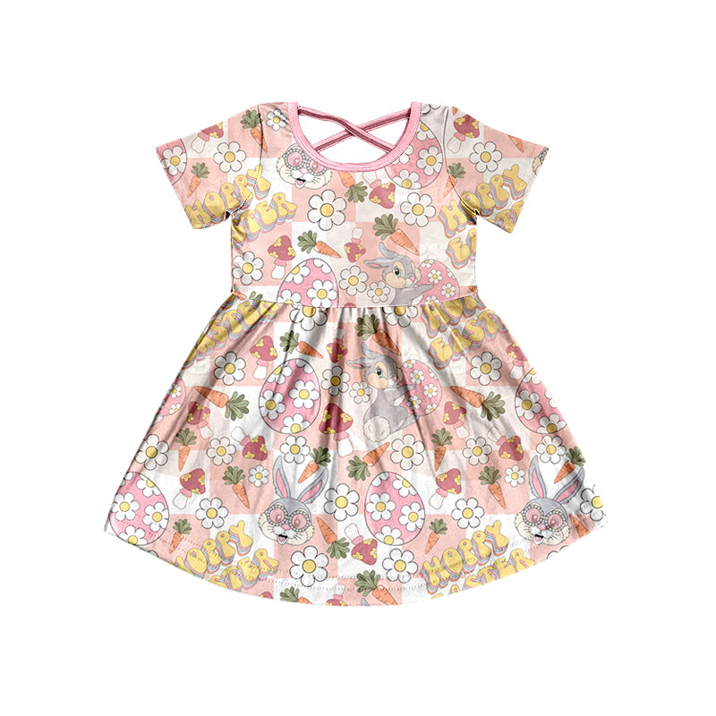 Baby Girls Easter Rabbit Eggs Short Sleeve Knee Length Dresses Preorder(moq 5)