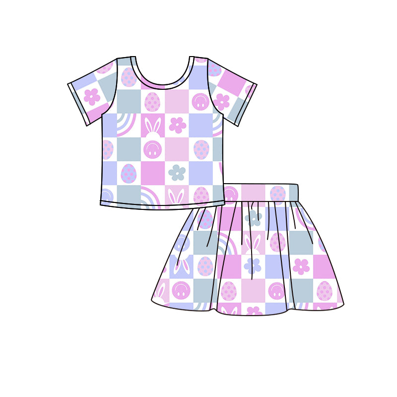 Baby Girls Easter Rabbit Purple Short Sleeve Shirt Skirts Clothing Sets Preorder(moq 5)