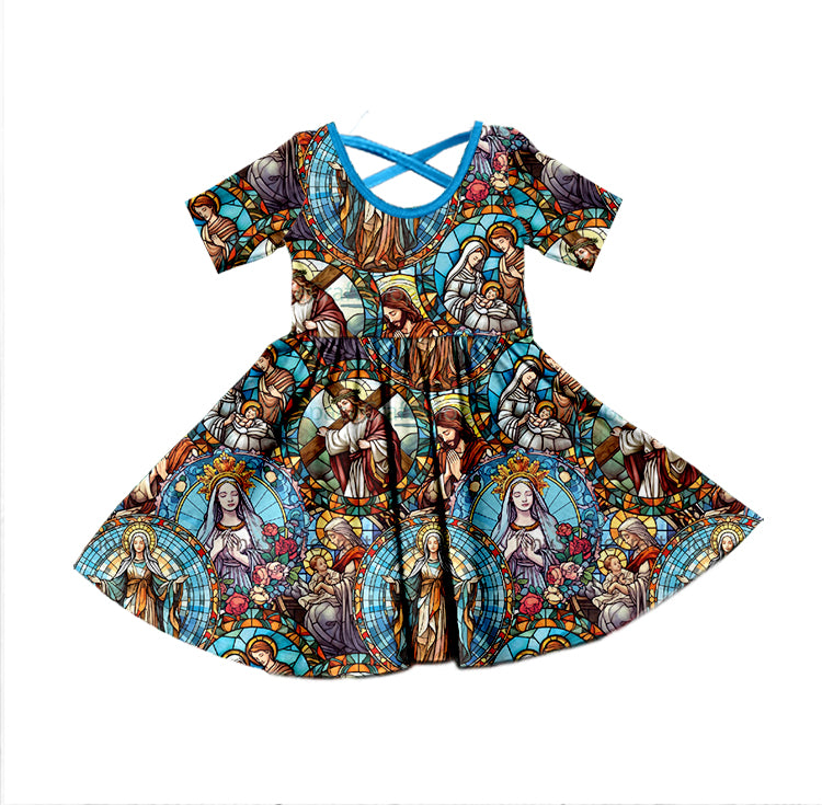 Baby Girls Easter Short Sleeve Jesus Knee Length Dresses Preorder(moq 5)