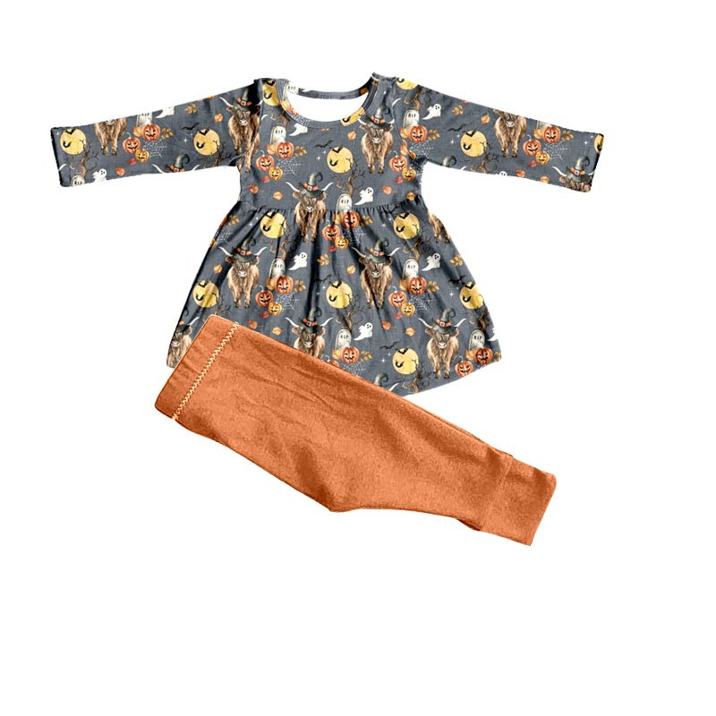 Baby girls fall pumpkin cow Halloween legging pants sets