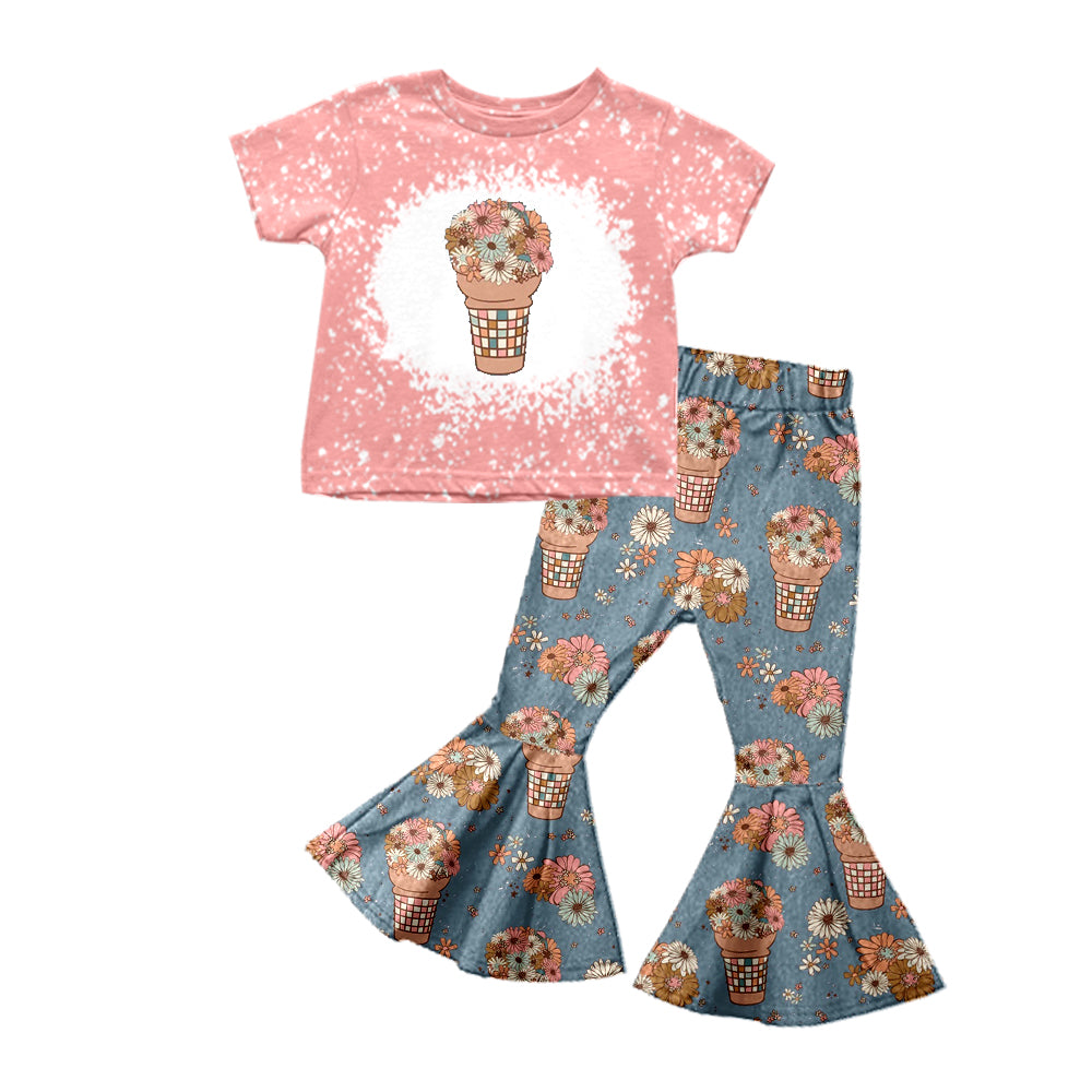 Baby Girls Flowers Bunches Shirt Bell Pants Clothes Sets Preorder(moq 5)
