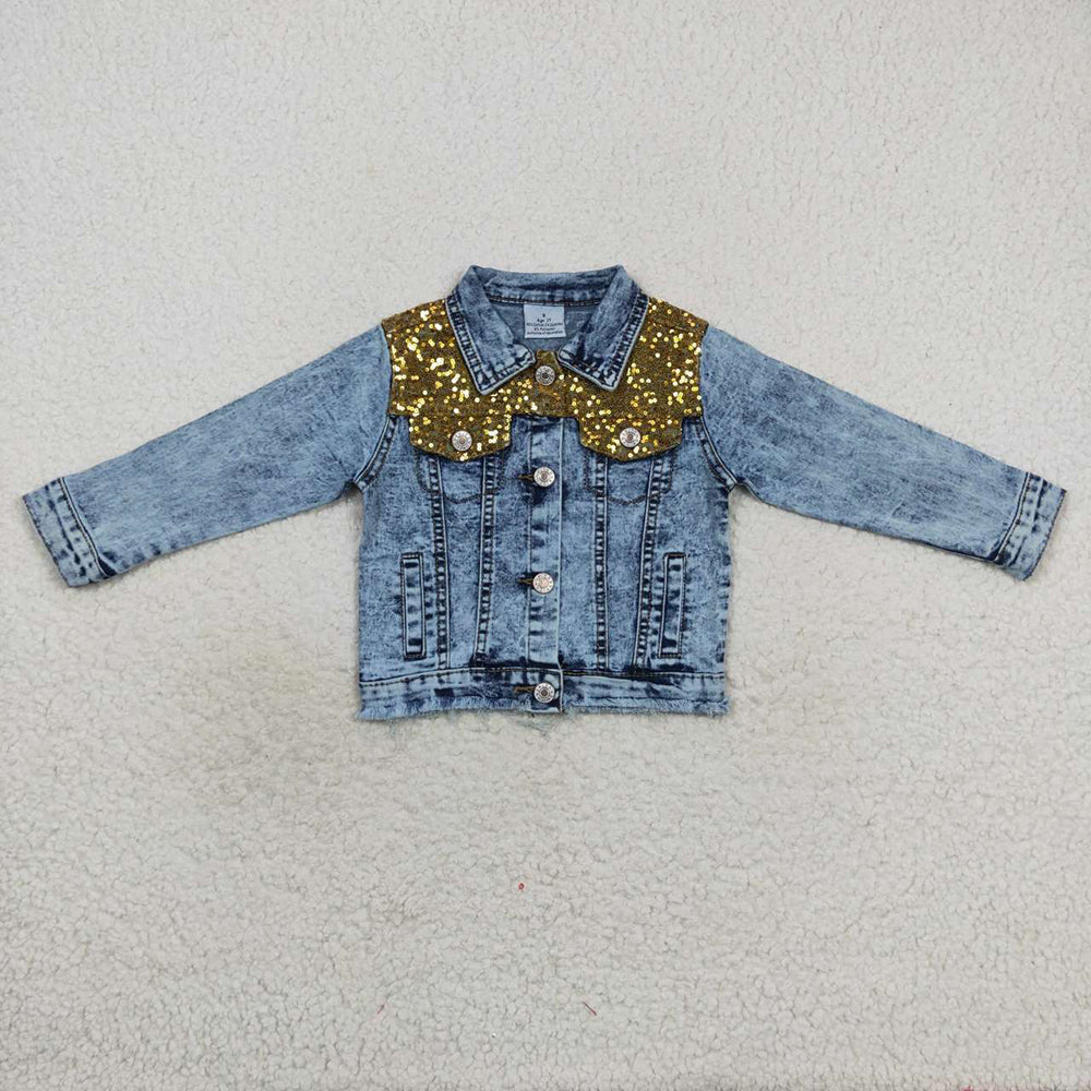 Baby Girls Gold Sequin Denim Buttons Jackets