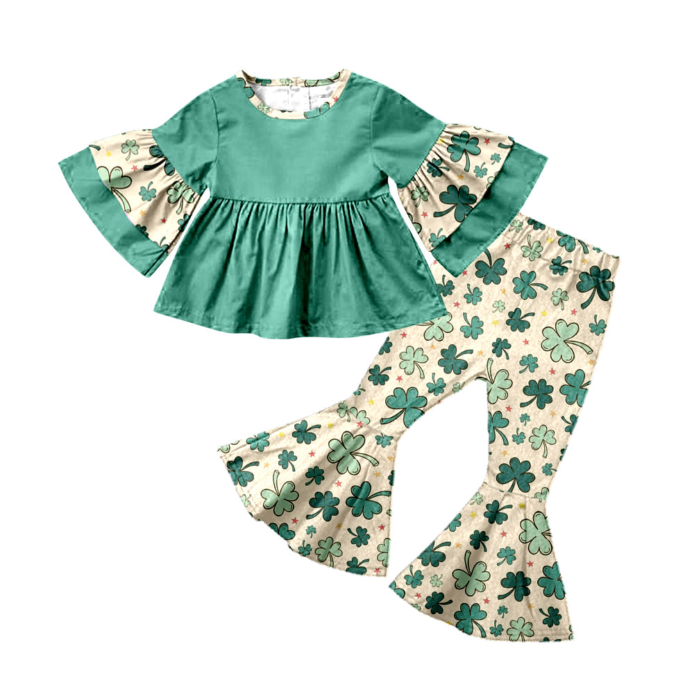 Baby Girls Green Tunic Quatrefoil St Patrick Day Bell Pants Clothing Sets Preorder(moq 5)