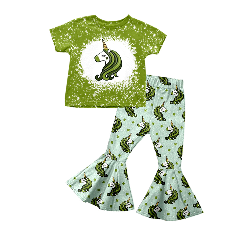 Baby Girls Green Unicorn Tee Bell Pants Clothing Sets Preorder(moq 5)