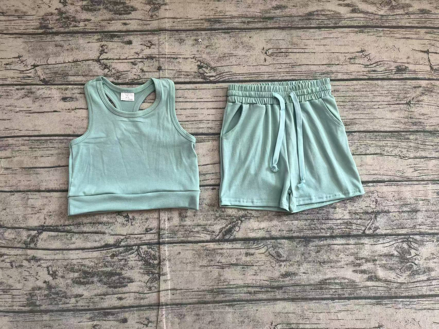 Baby Girls Green Vest Top Yoga Sports Shorts Clothes Sets