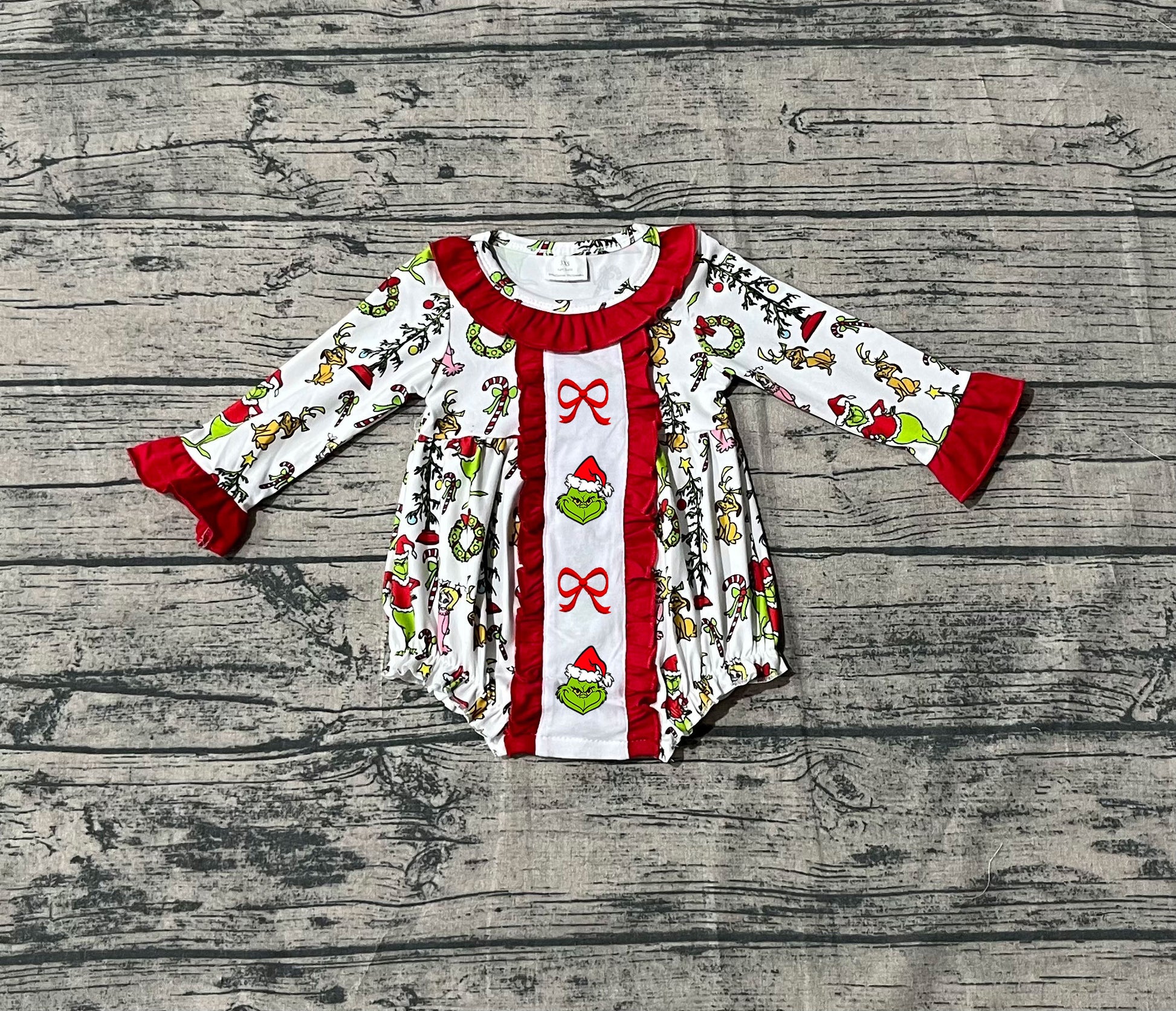 Baby Girls Grin Bows Holly Christmas Ruffle Collar Rompers