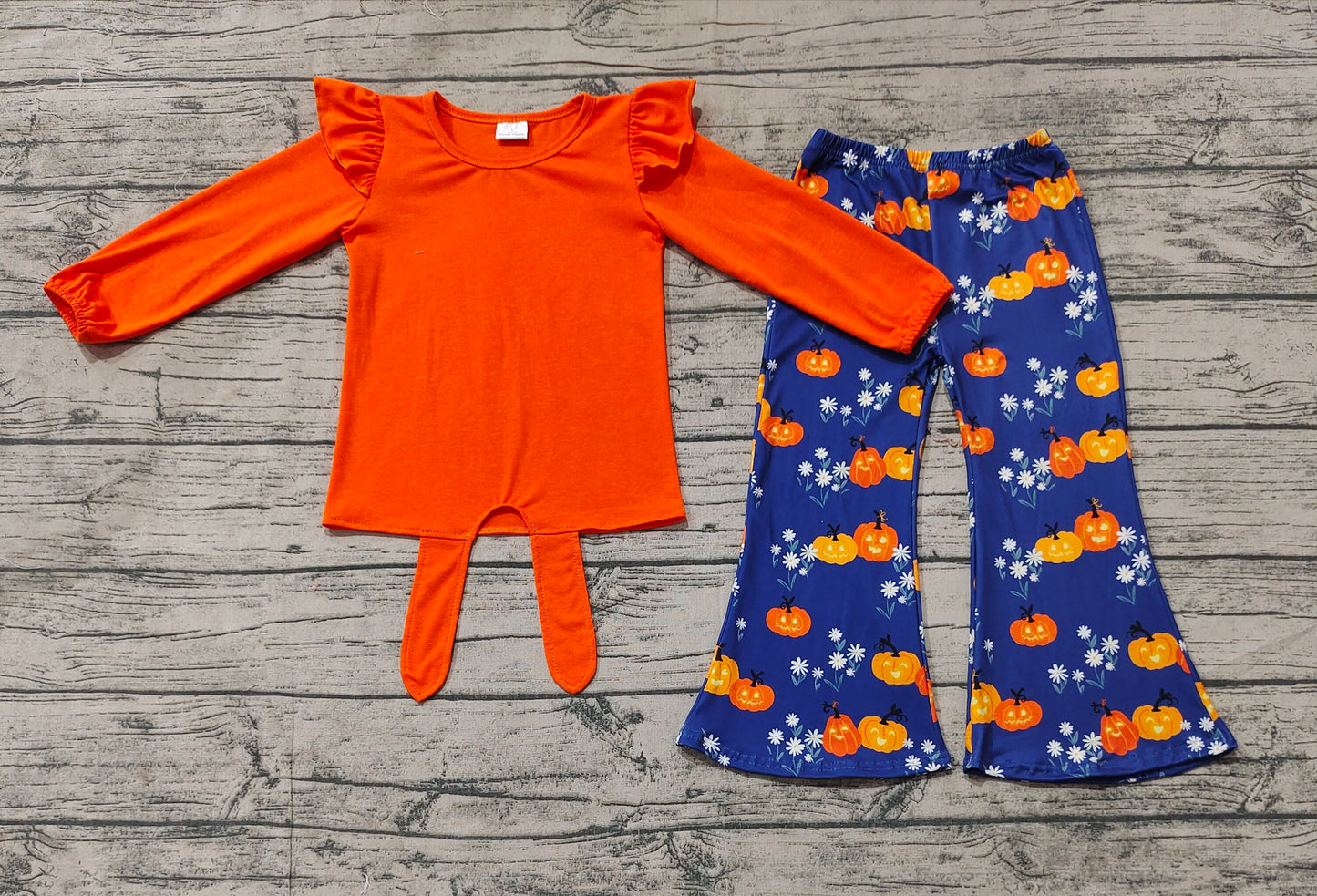 Baby Girls Halloween Orange Top Pumpkins Flowers Bell Pants Outfits Sets