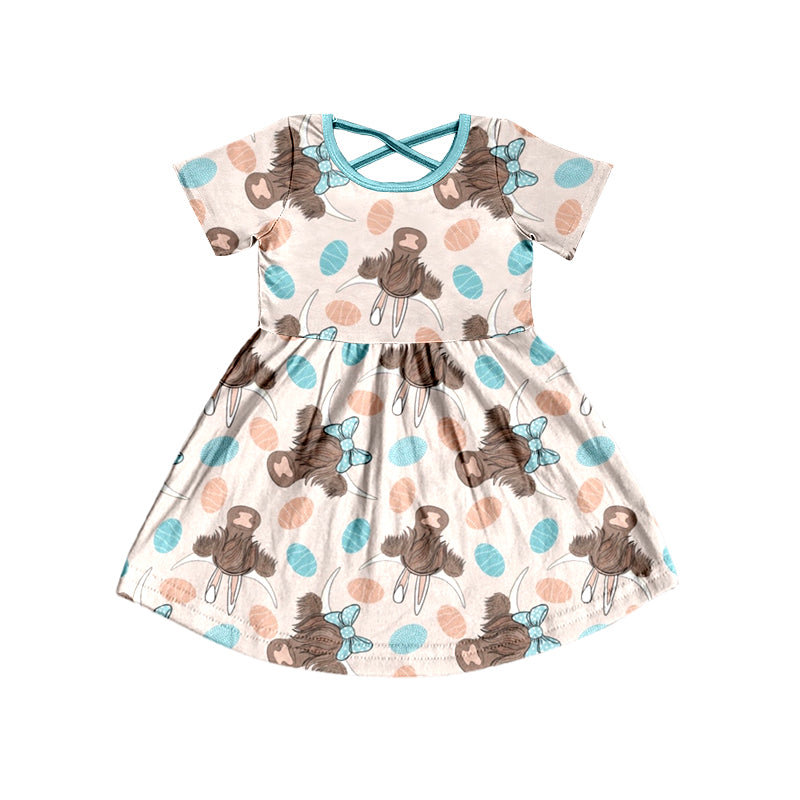 Baby Girls Highland Cow Easter Short Sleeve Knee Length Dresses Preorder(moq 5)