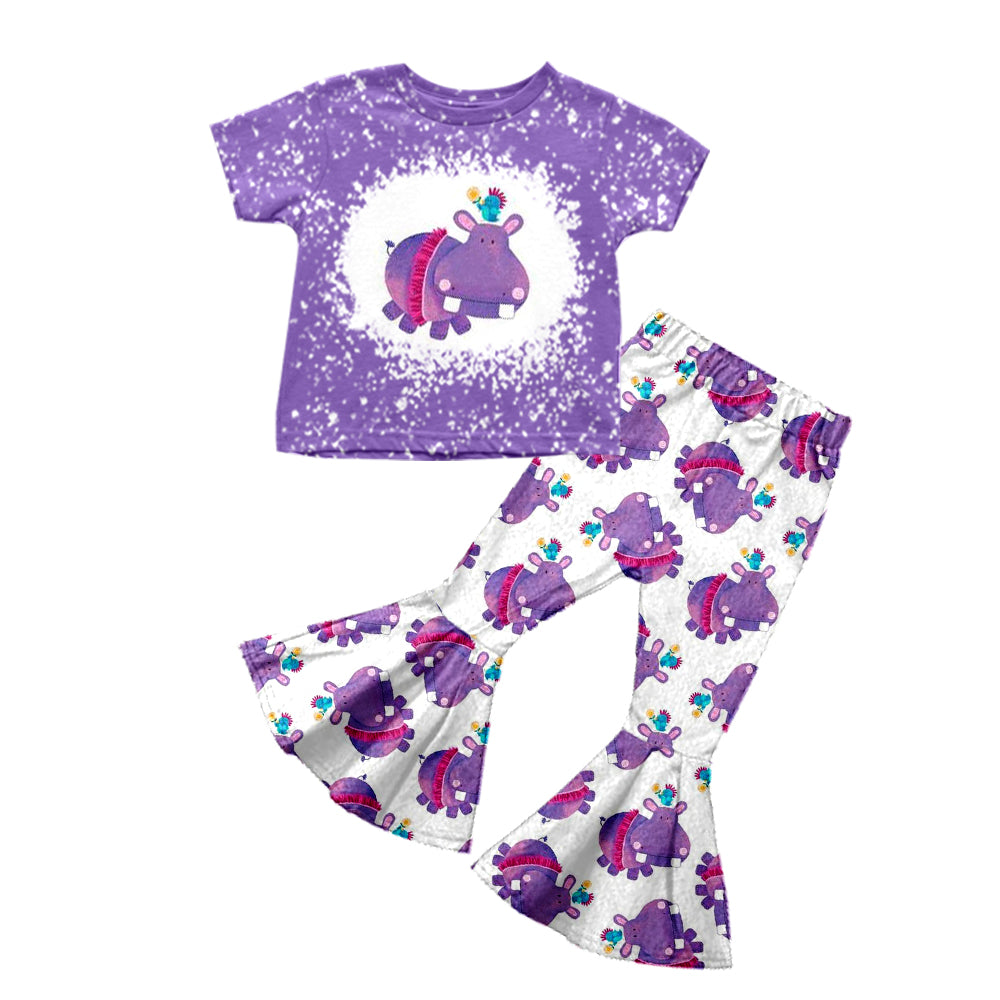 Baby Girls Hippo Purple Bell Pants Clothes Sets preorder(moq 5)