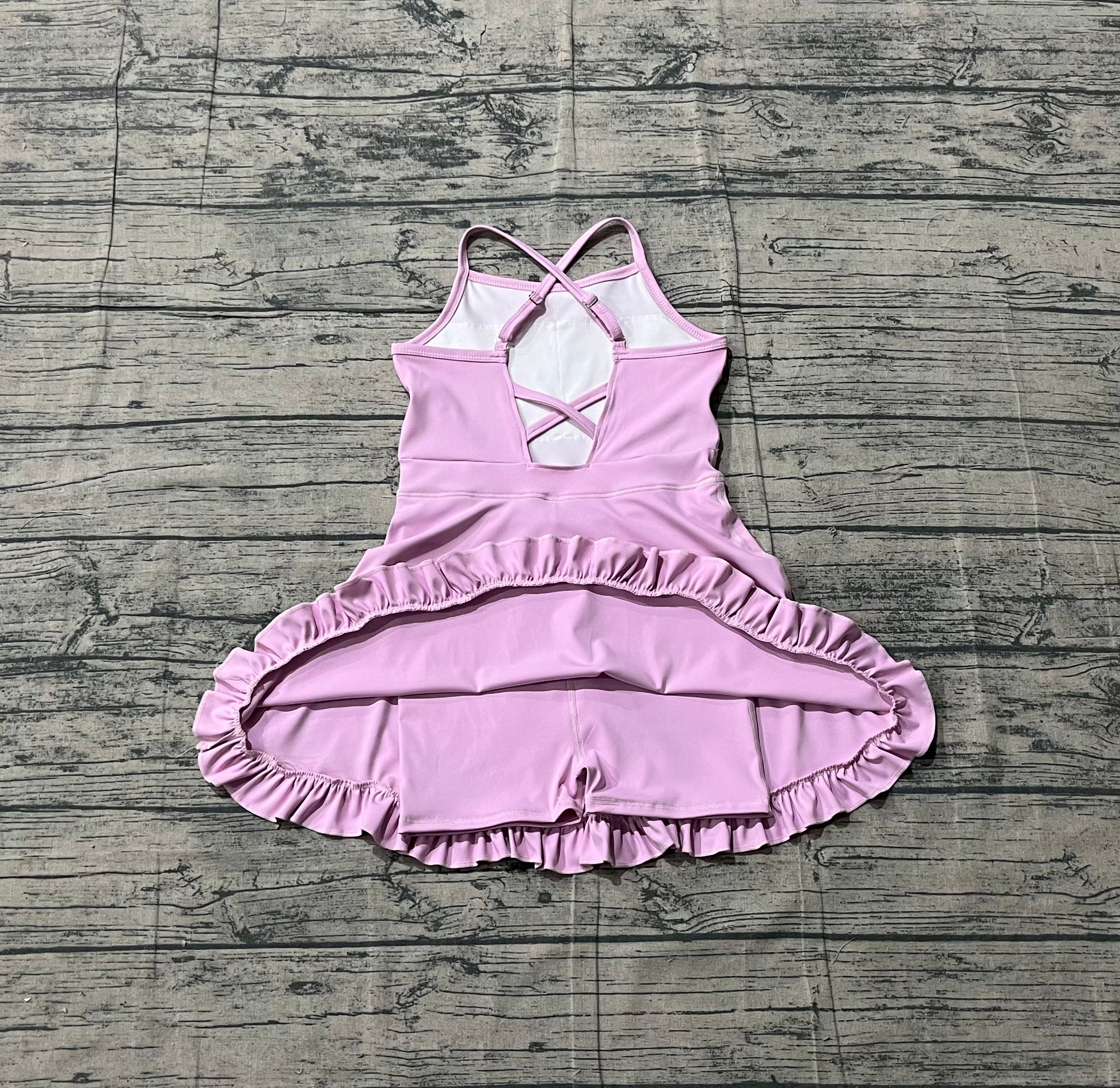 Baby Girls Lavender Strap Yoga Active Shorts Ruffle Knee Length Dresses Preorder