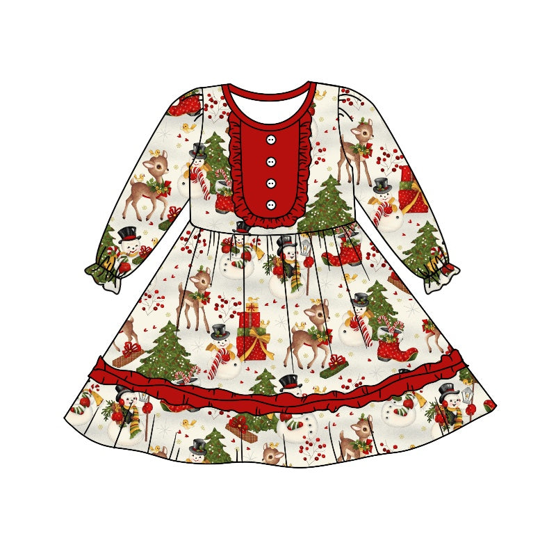Baby Girls Long Sleeve Christmas Deer Knee Length Dresses preorder(moq 5)