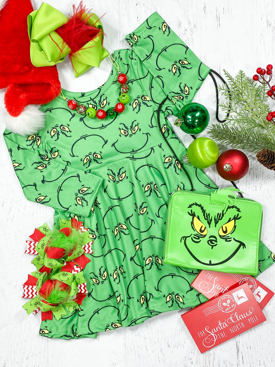 Baby Girls Long Sleeve Green Face Knee Length Dresses Preorder(moq 5)
