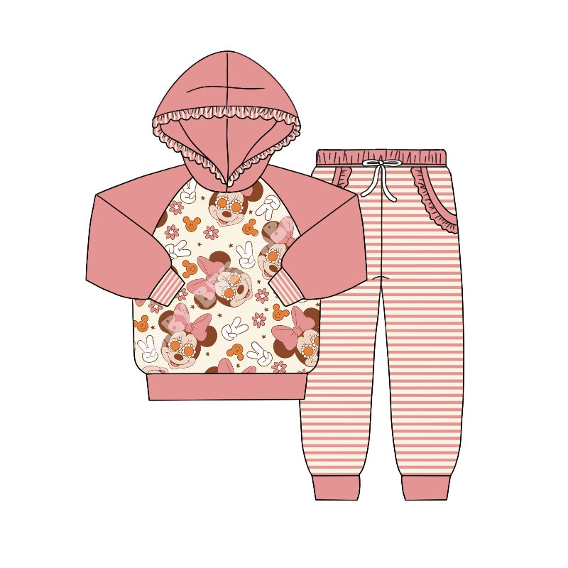 Baby Girls Long Sleeve Hooded Mouse Shirt Pink Stripes Pants Clothing Sets Preorder(moq 5)