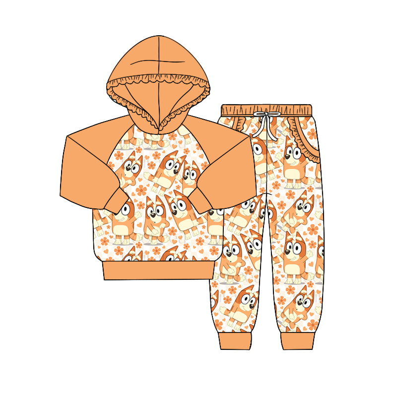 Baby Girls Long Sleeve Hooded Orange Dog Shirt Pants Clothing Sets Preorder(moq 5)