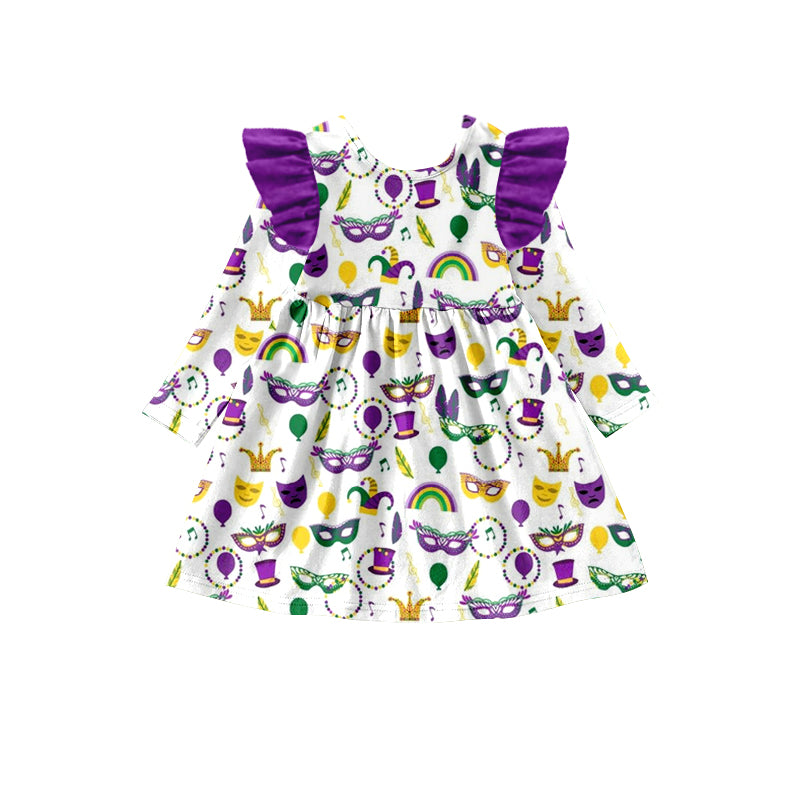Baby Girls Long Sleeve Mardi Gras Mask Knee Length Dresses Preorder(moq 5)