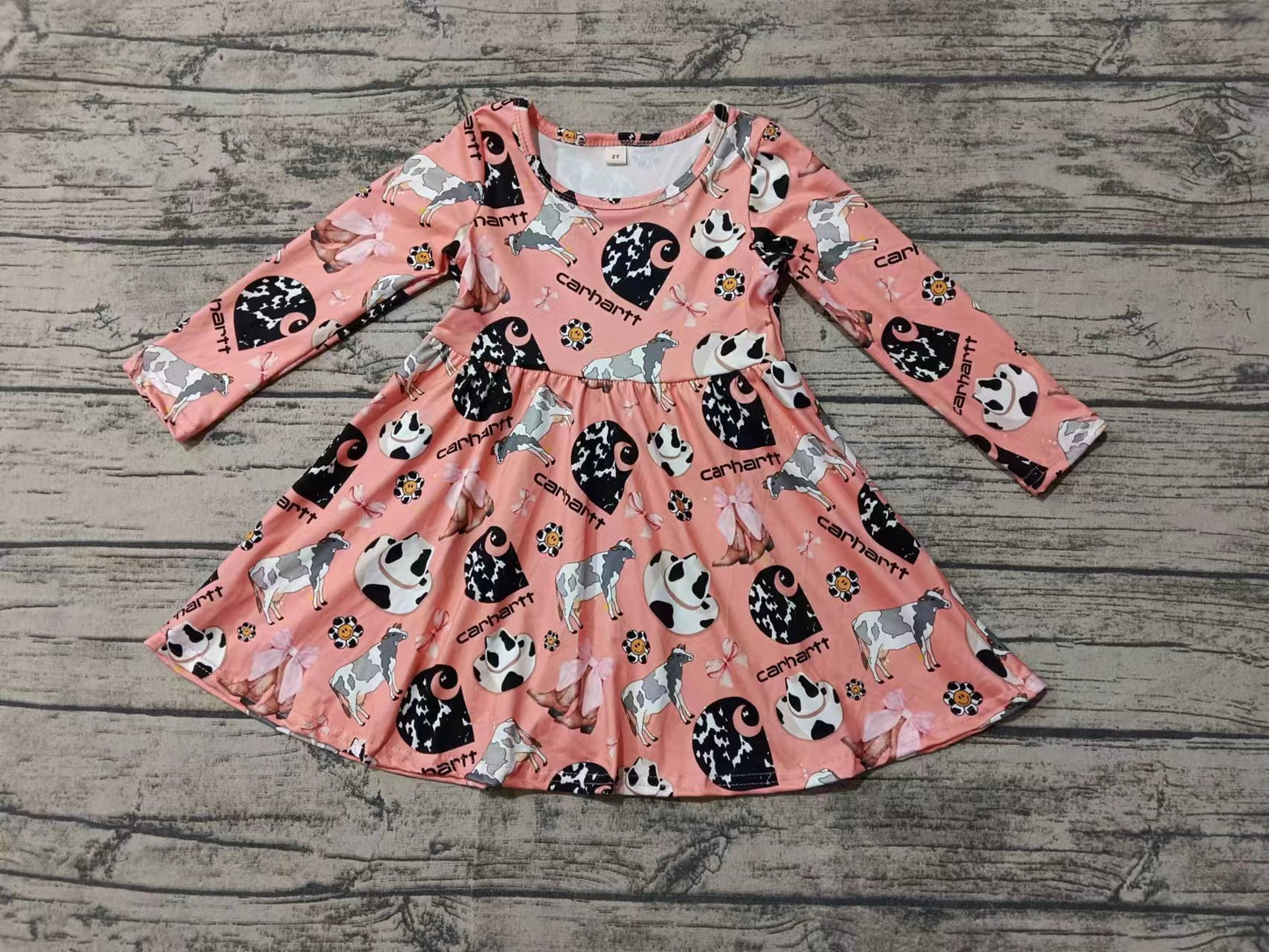 Baby Girls Long Sleeve Pink Boots Knee Length Dresses Preorder(moq 5)
