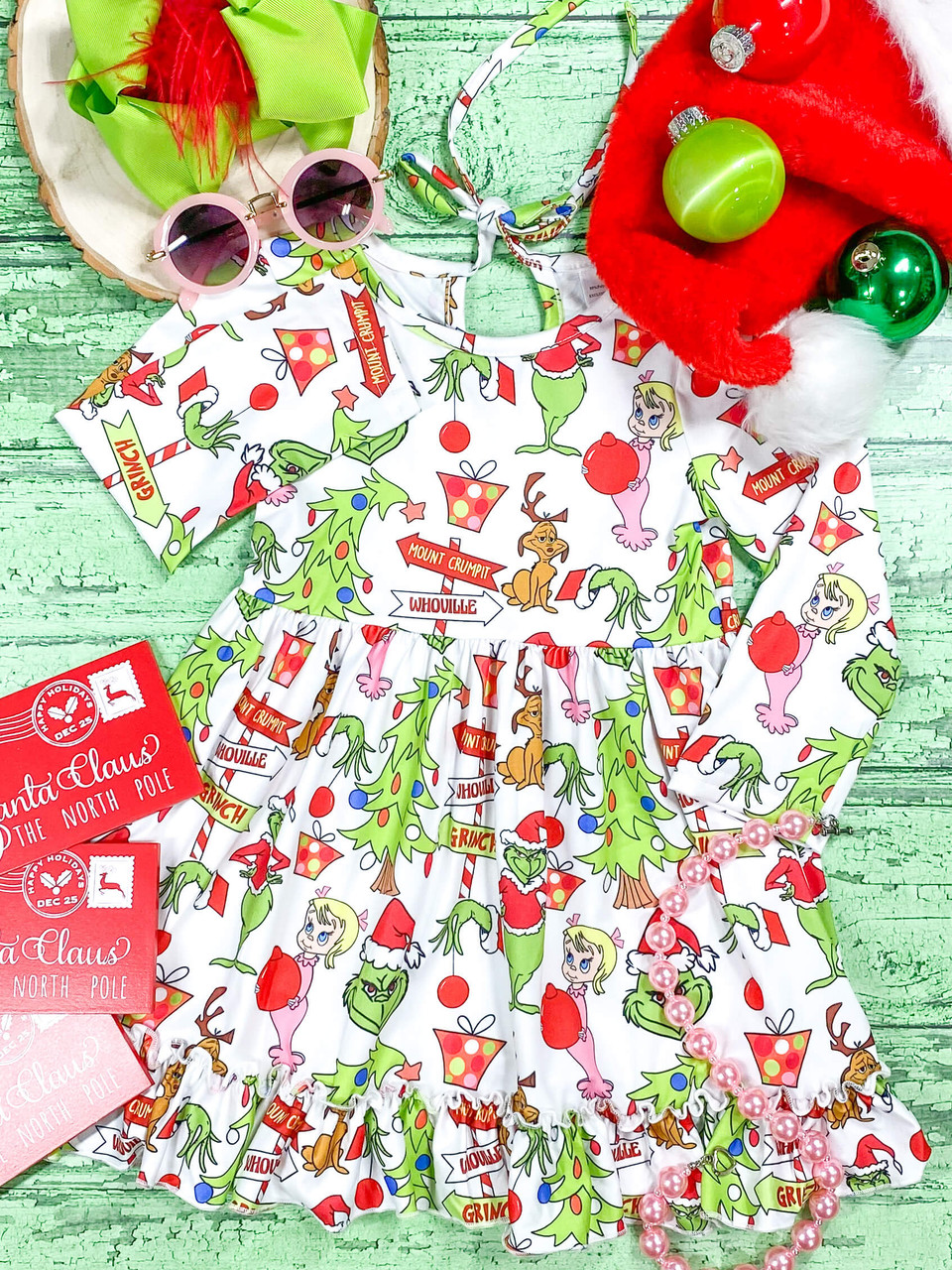Baby Girls Long Sleeve White Frog Knee Length Dresses Preorder(moq 5)