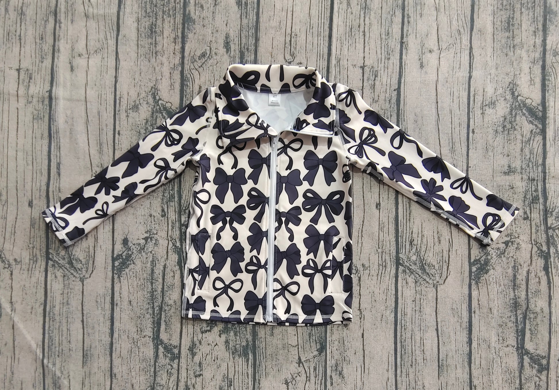 Baby Girls Long Sleeves Black Bows Zipper Pockets Yoga Jacket Tops