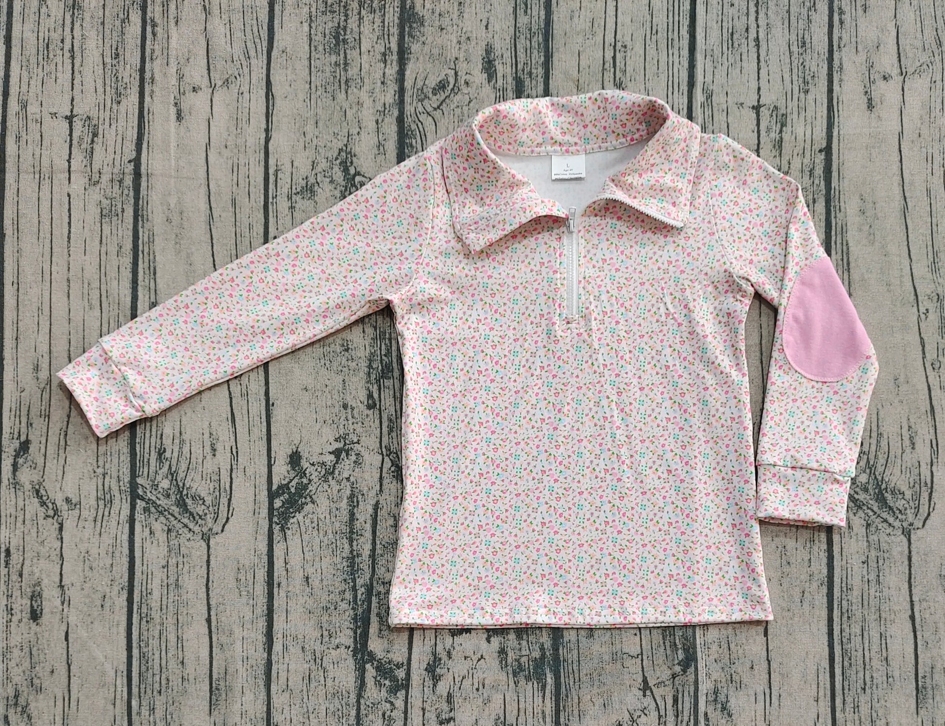 Baby Girls Long Sleeves Pink Floral Zipper Pullovers Tops
