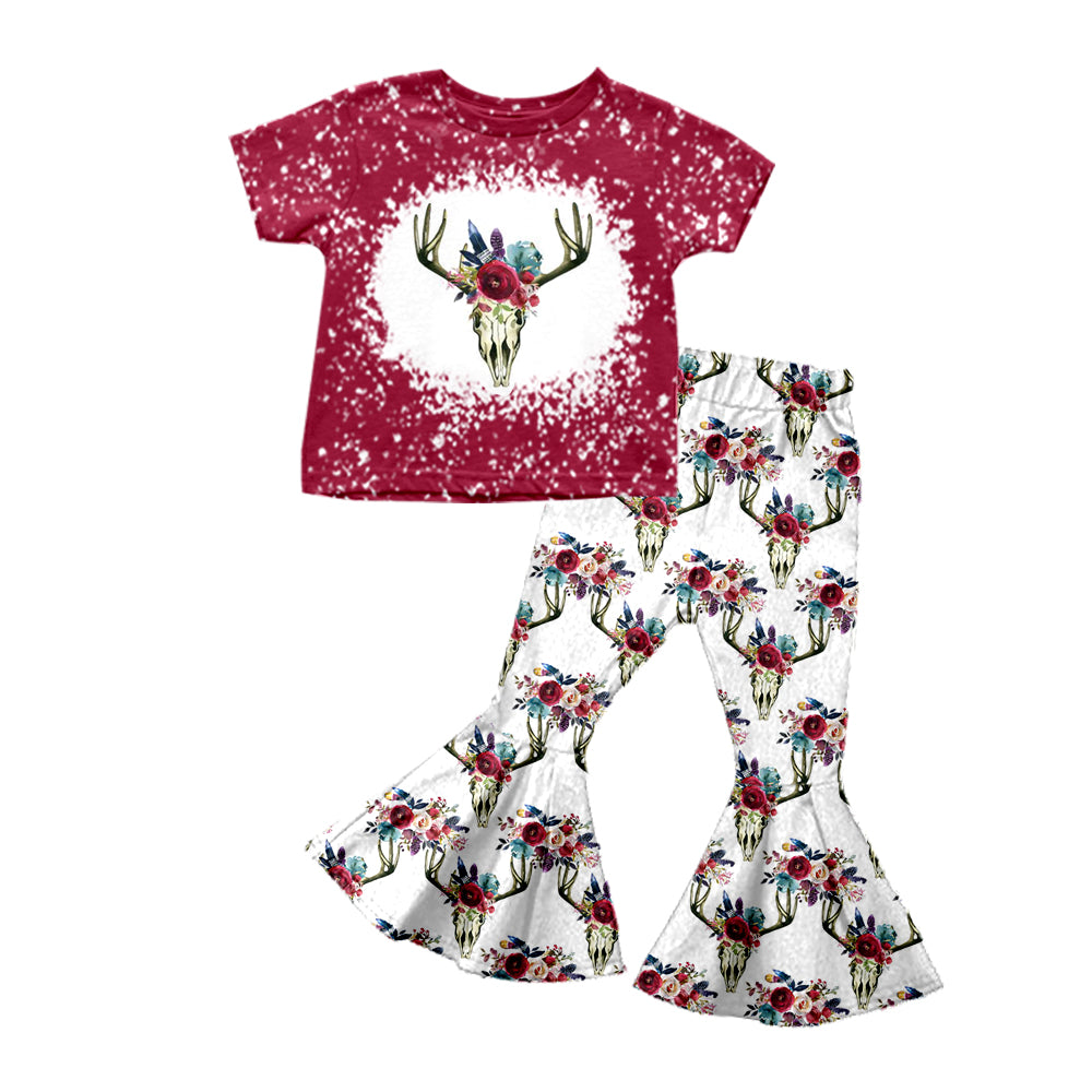 Baby Girls Maroon Cow Flowers Tee Shirt Bell Pants Clothing Sets Preorder(moq 5)