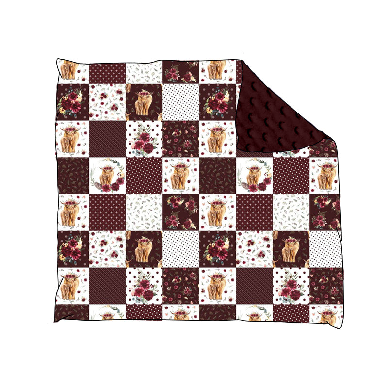 Baby Girls Maroon Floral Cow Minky Blankets preorder(moq 5)