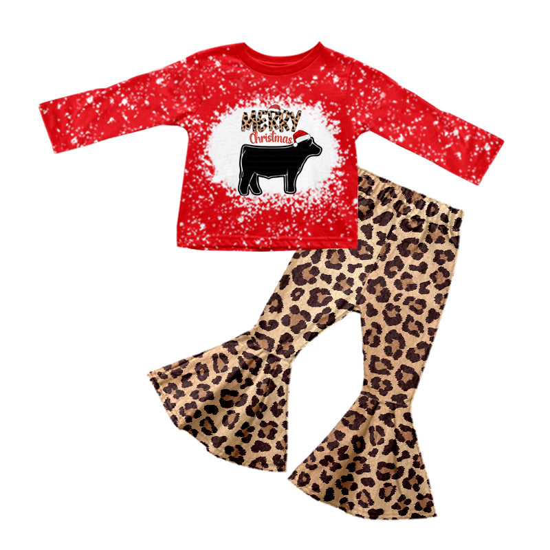 Baby Girls Merry Christmas Bell Leopard Pants Clothing Sets preorder(moq 5)