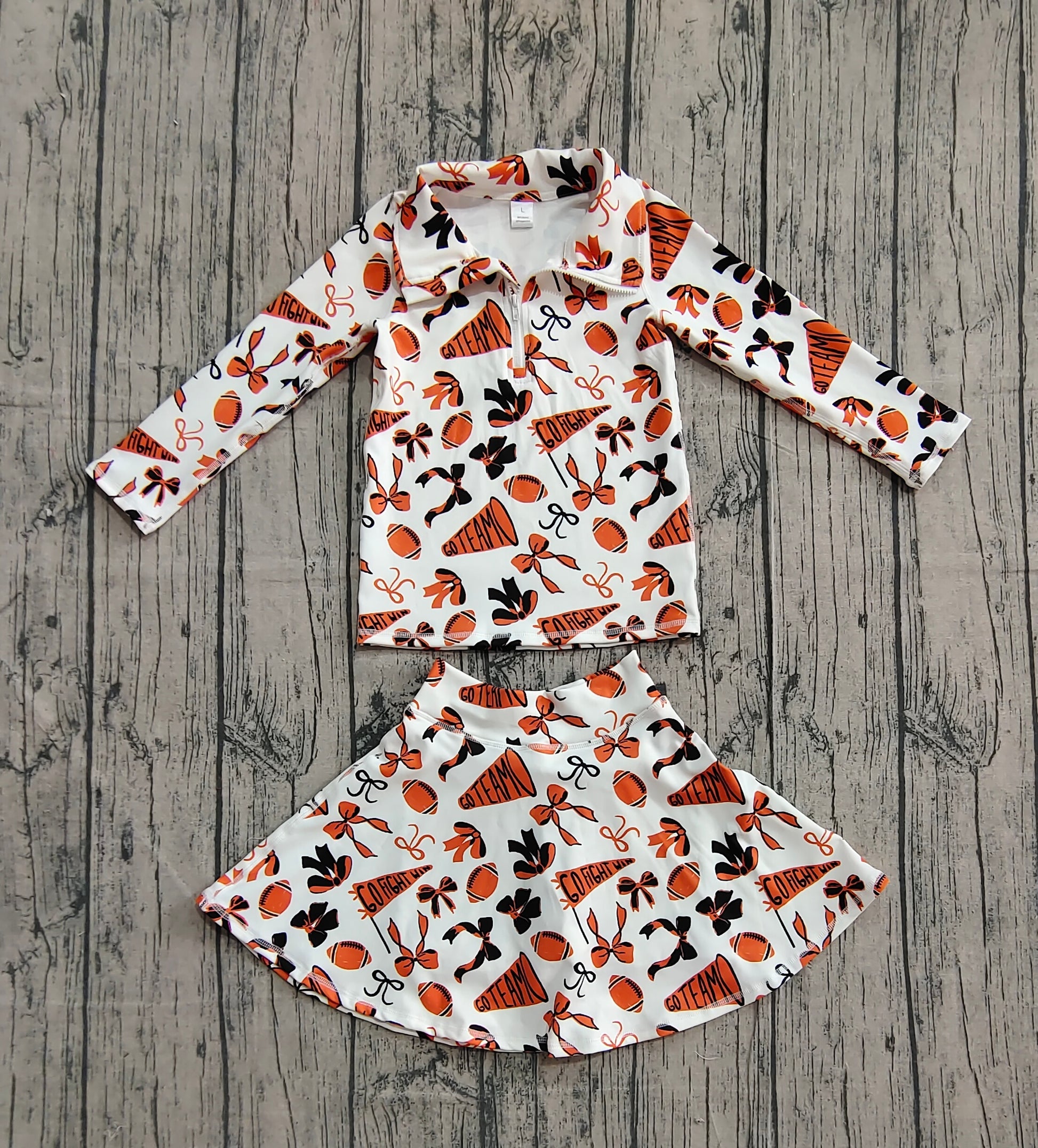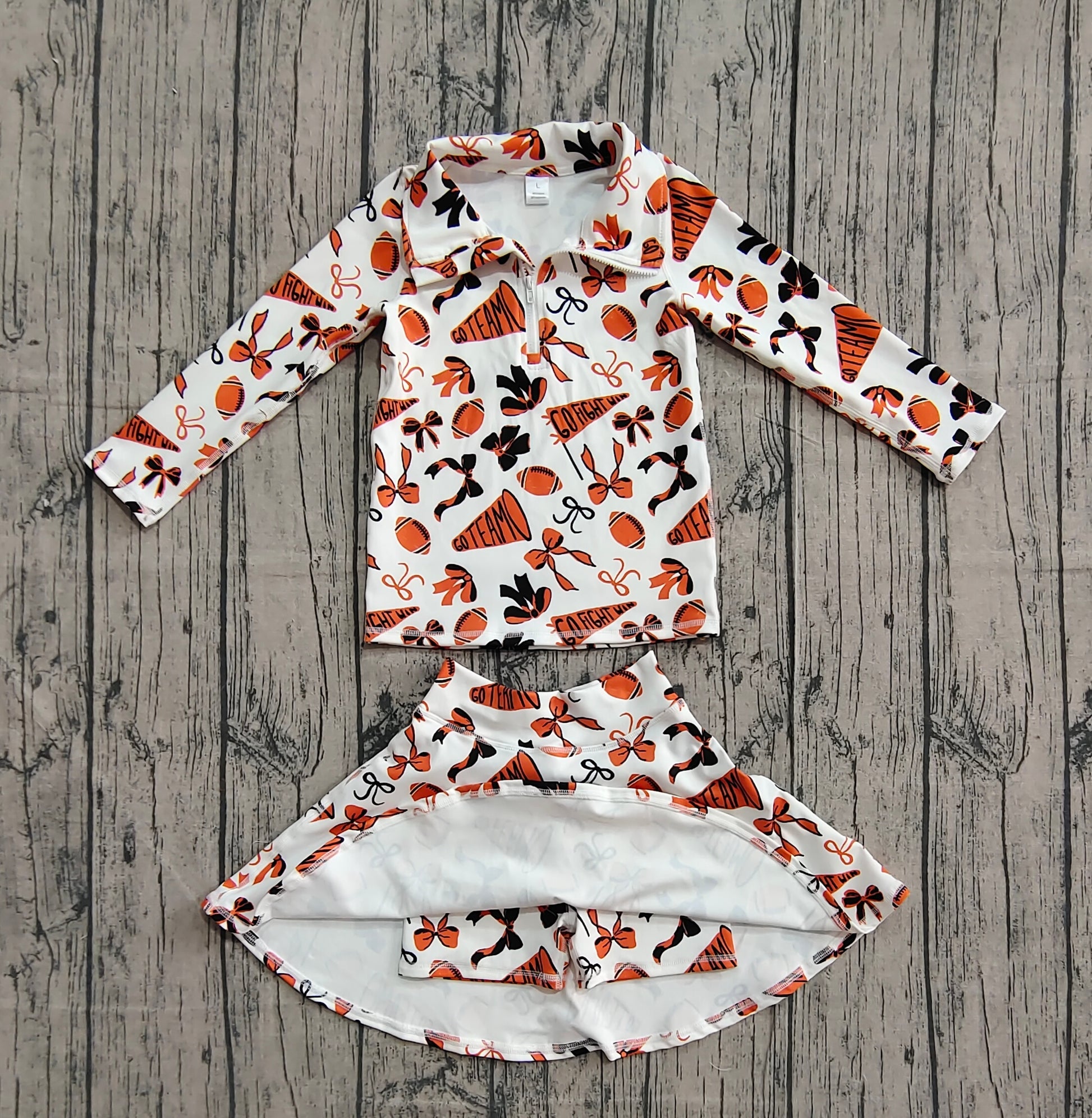 Baby Girls Orange Black Bows Go Team Zipper Pullovers Skorts Yoga Active Clothes Set