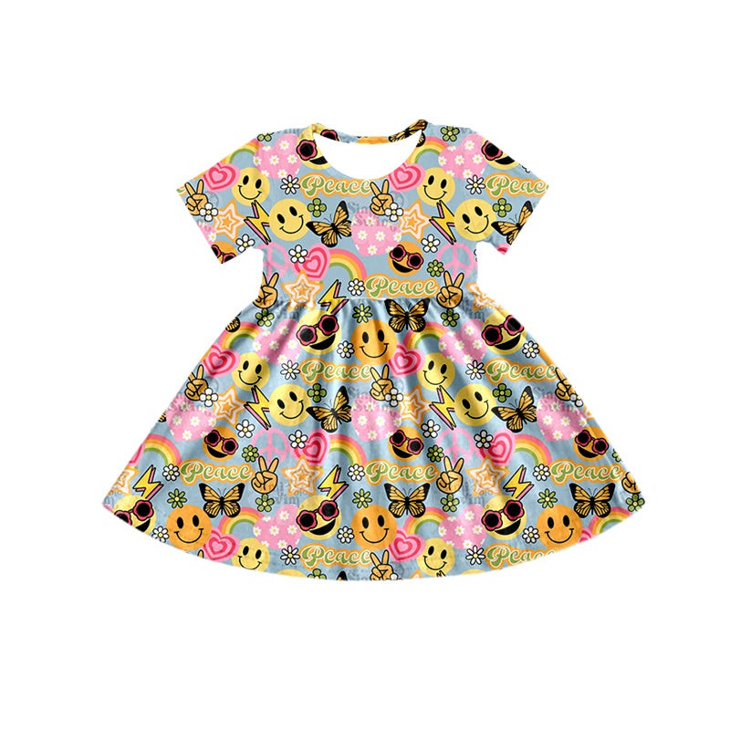 Baby Girls Peace Hearts Short Sleeve Knee Length Dresses Preorder(moq 5)