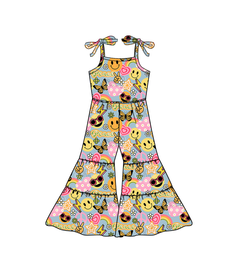 Baby Girls Peace Hearts Straps Bell Pants Jumpsuits Preorder(moq 5)