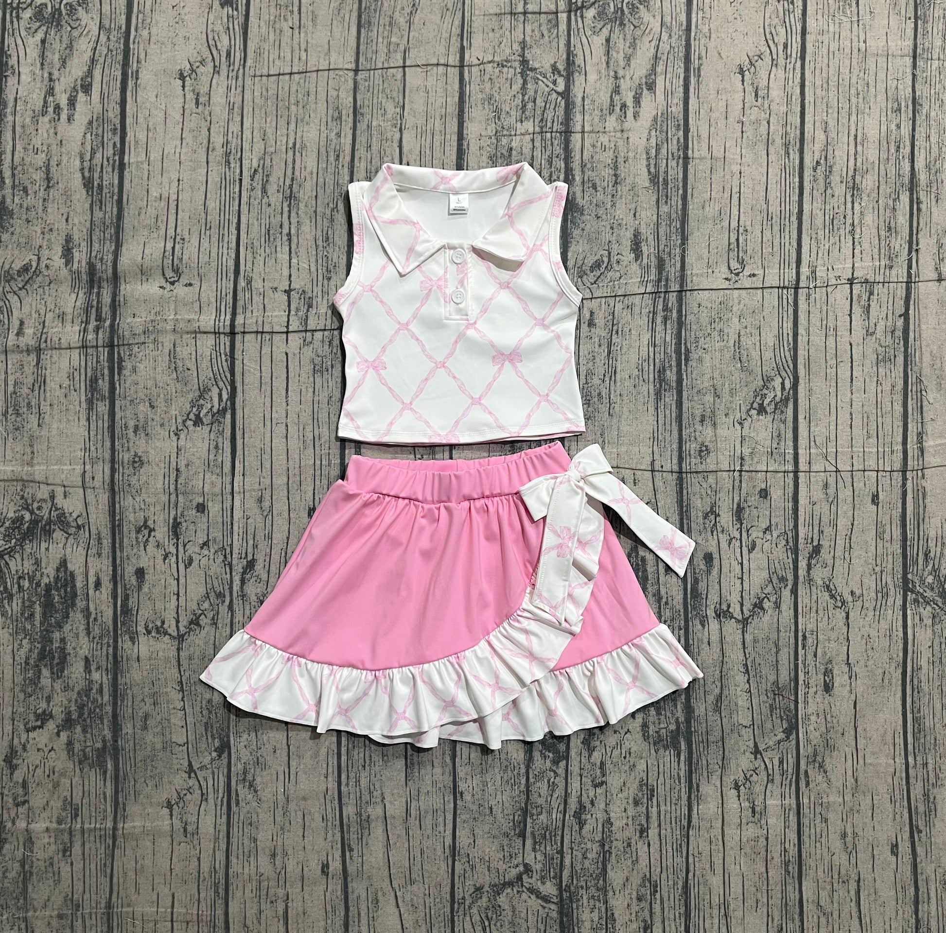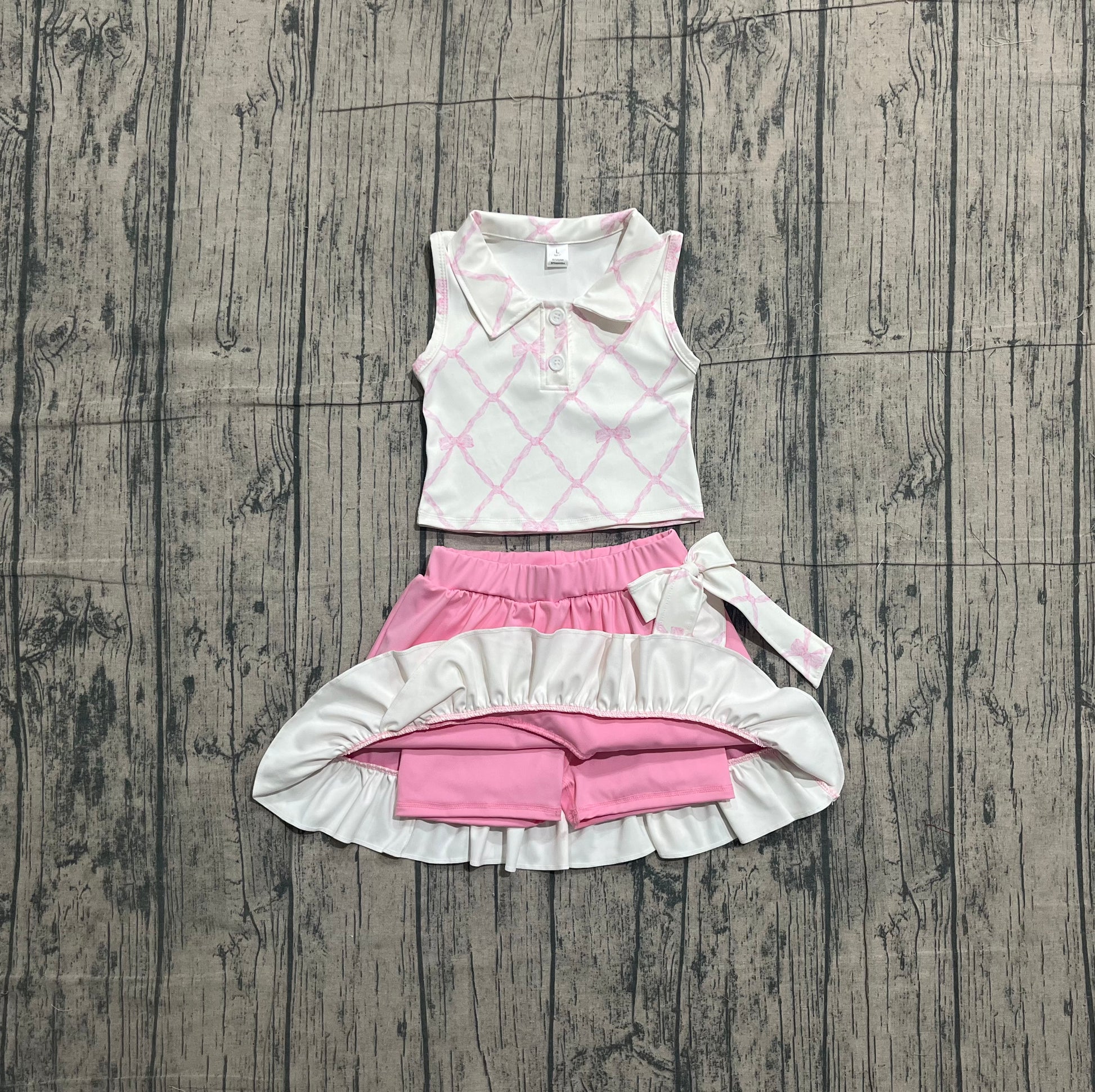 Baby Girls Pink Bows Checked Button Top Ruffle Skirt Shorts Yoga Clothes Sets Preorder
