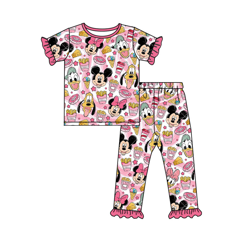 Baby Girls Pink Cartoon Shirt Pants Pajamas Clothing Sets Preorder(moq 5)