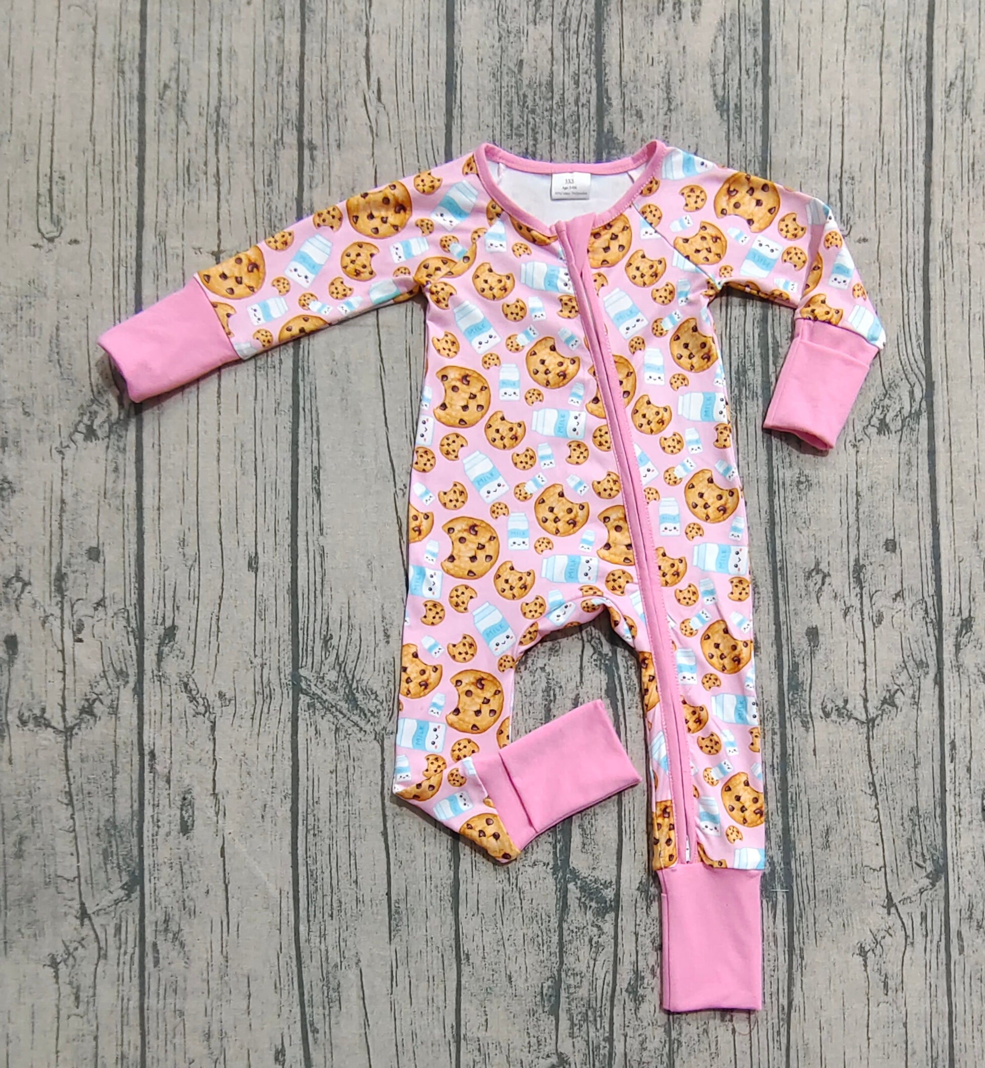 Baby Girls Pink Christmas Milk Cookies Zipper Footie Rompers