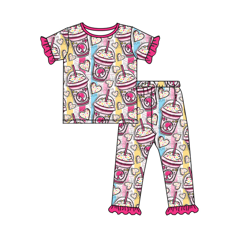 Baby Girls Pink Doll Shirt Pants Pajamas Clothing Sets Preorder(moq 5)
