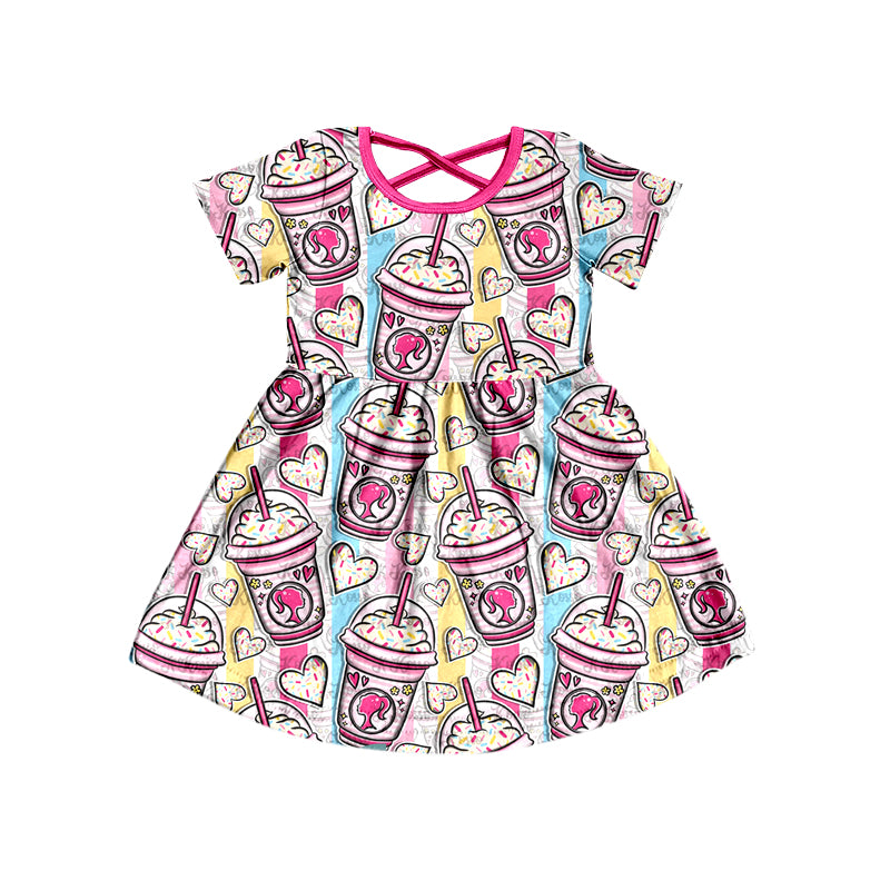 Baby Girls Pink Doll Short Sleeve Knee Length Dresses Preorder(moq 5)