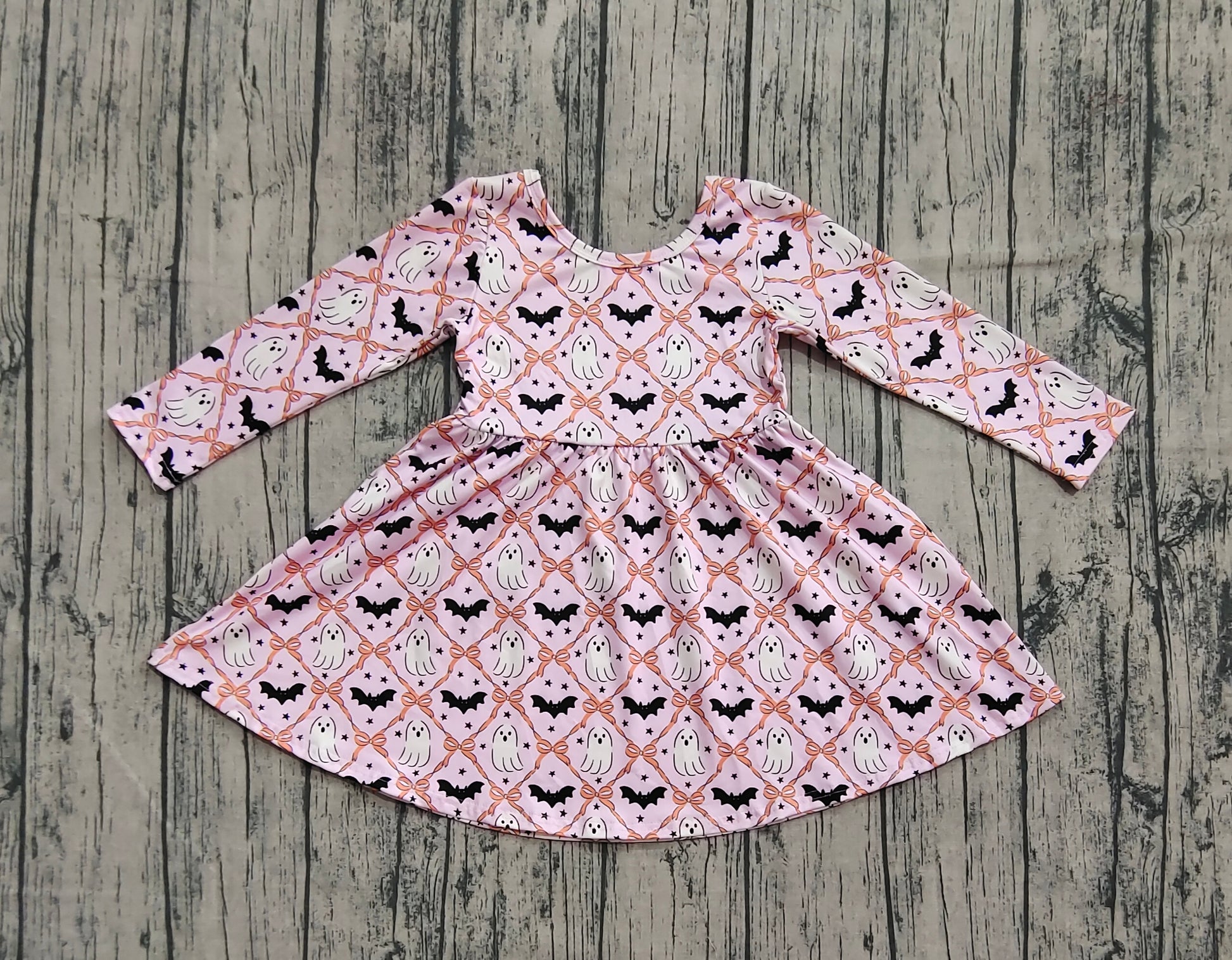 Baby Girls Pink Halloween Bows Bats Ghosts Knee Length Dresses