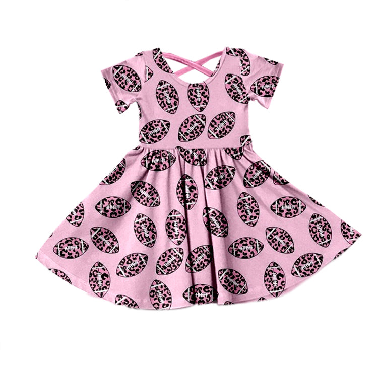 Baby Girls Pink Leopard Football Knee Length Dresses Preorder(moq 5)