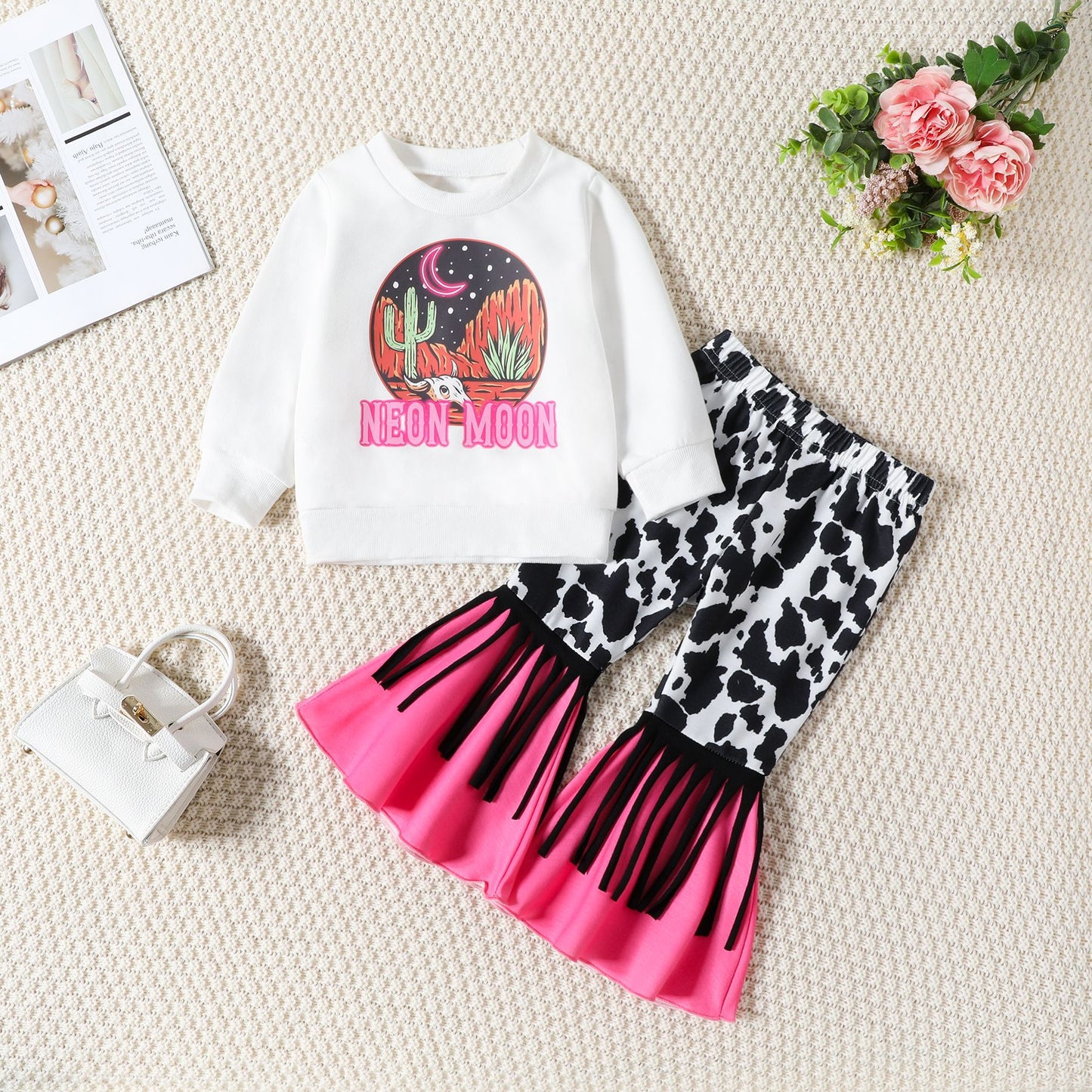 Baby Girls Pink Moon Print Tassel Bell Pants Clothes Sets preorder(moq 5)