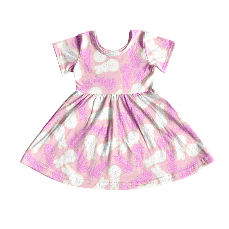 Baby Girls Pink Rabbit Short Sleeve Knee Length Dresses Preorder(moq 5)