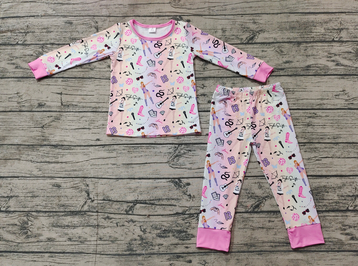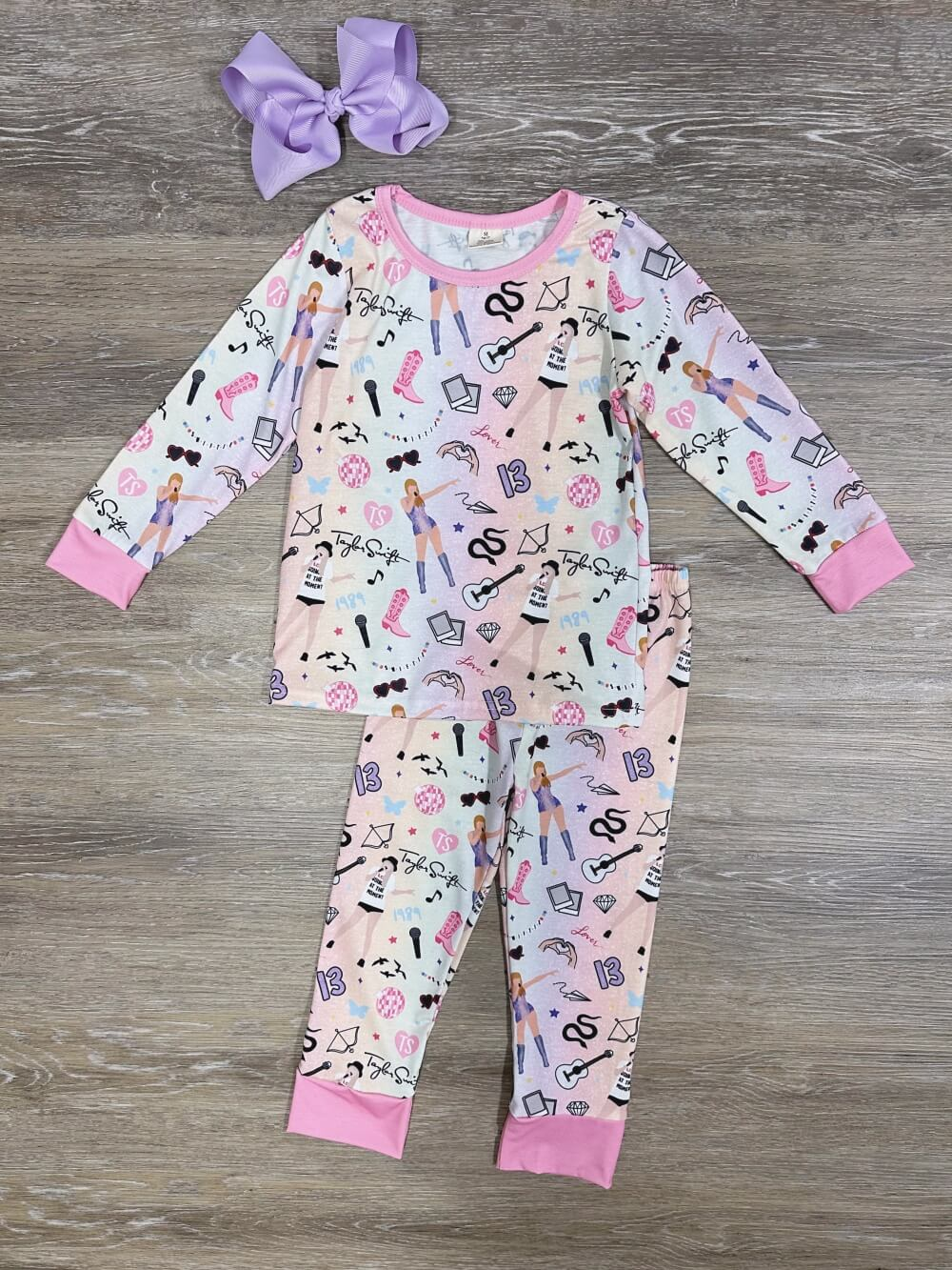 Baby Girls Pink Singer Long Sleeve Bamboo Pajamas Clothes Sets