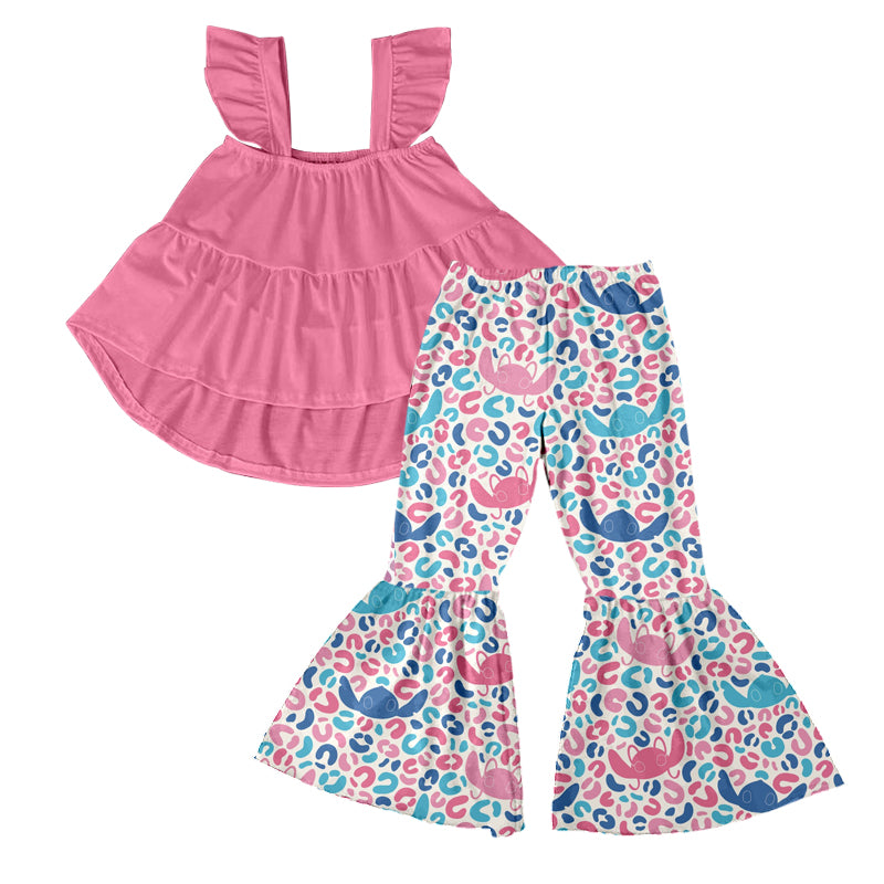 Baby Girls Pink Tunic Cartoon Leopard Pants Clothes Sets preorder(moq 5)