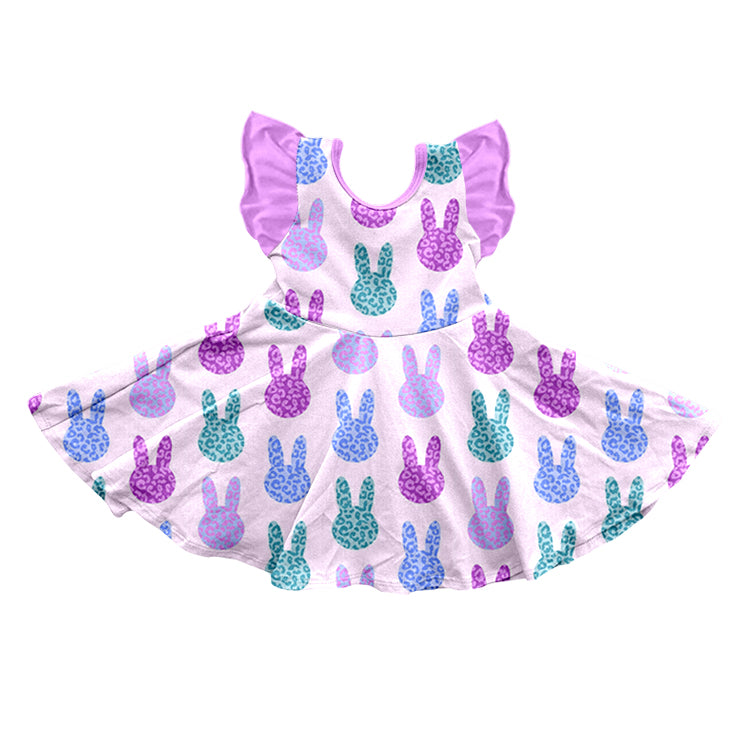 Baby Girls Purple Rabbit Purple Flutter Sleeve Knee Length Dresses Preorder(moq 5)