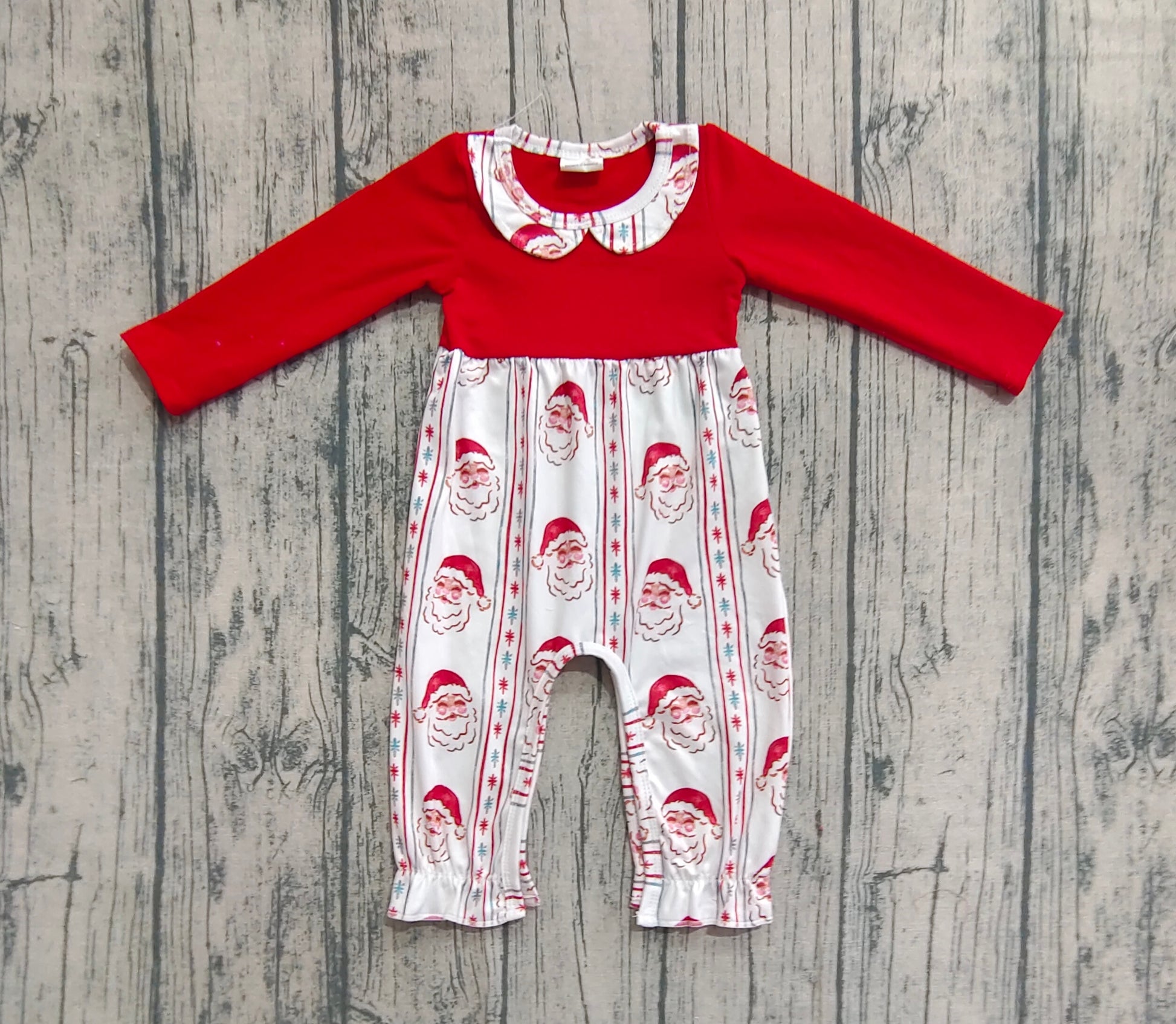 Baby Girls Red Christmas Santa Stripe Ruffle Pant Rompers