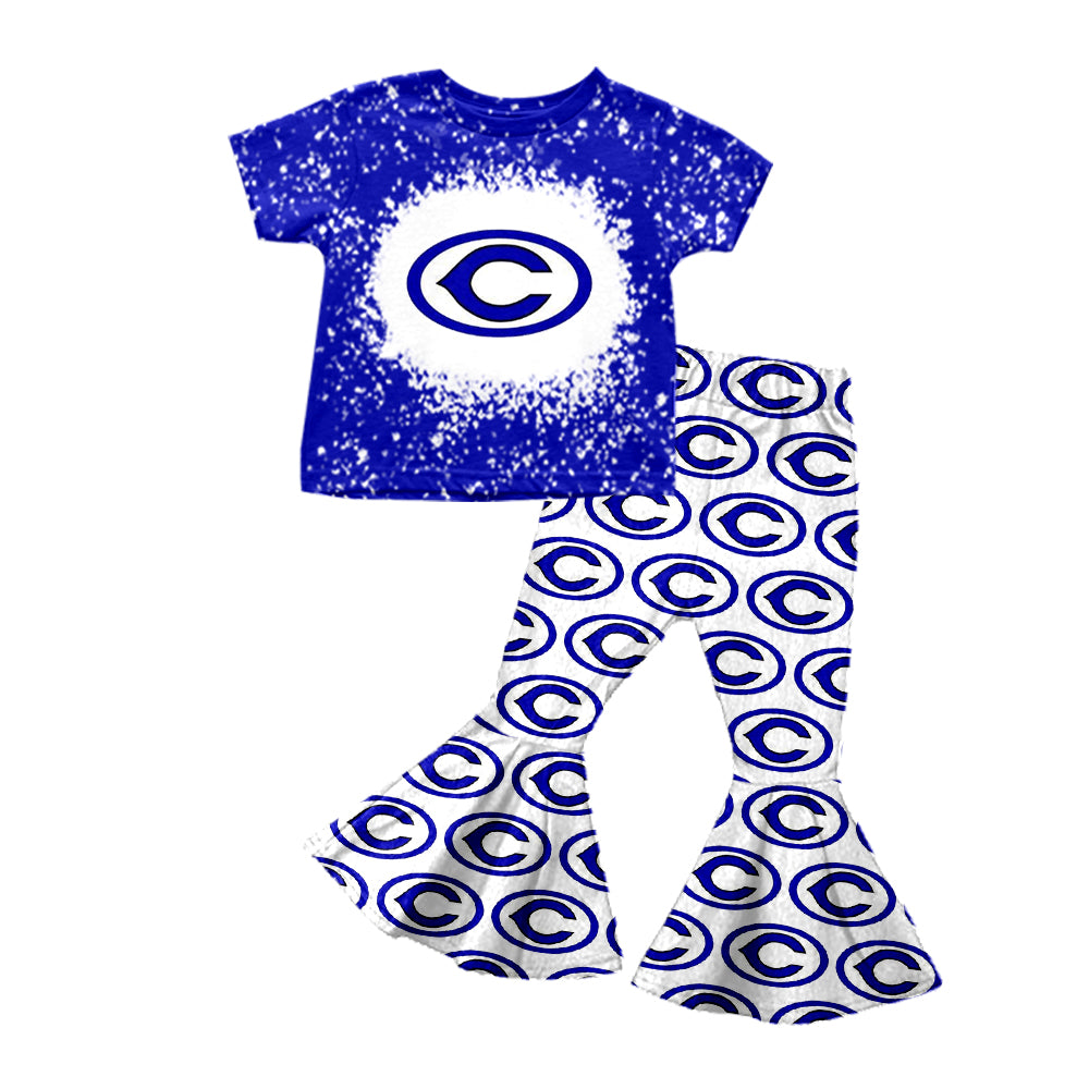 Baby Girls School Team Blue Shirt Top Bell Pants Clothes Sets Preorder(moq 5)