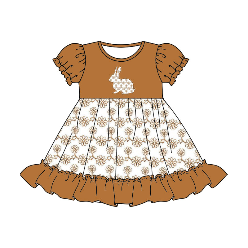 Baby Girls Short Sleeve Easter Rabbit Short Sleeve Knee Length Dresses Preorder(moq 5)