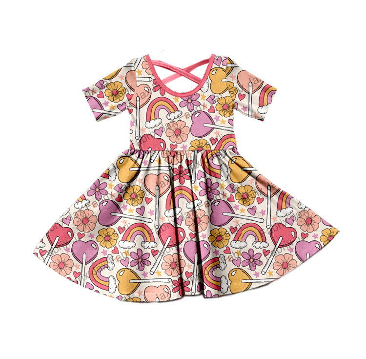 Baby Girls Short Sleeve Flowers Rainbow Knee Length Dresses Preorder(moq 5)