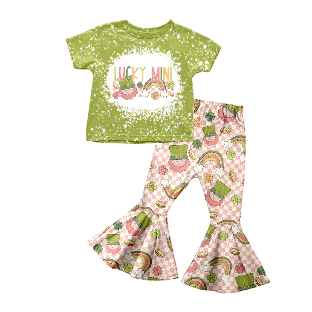 Baby Girls Short Sleeve Lucky Mini Tee Shirt Top Bell Pants Clothing Sets Preorder(moq 5)