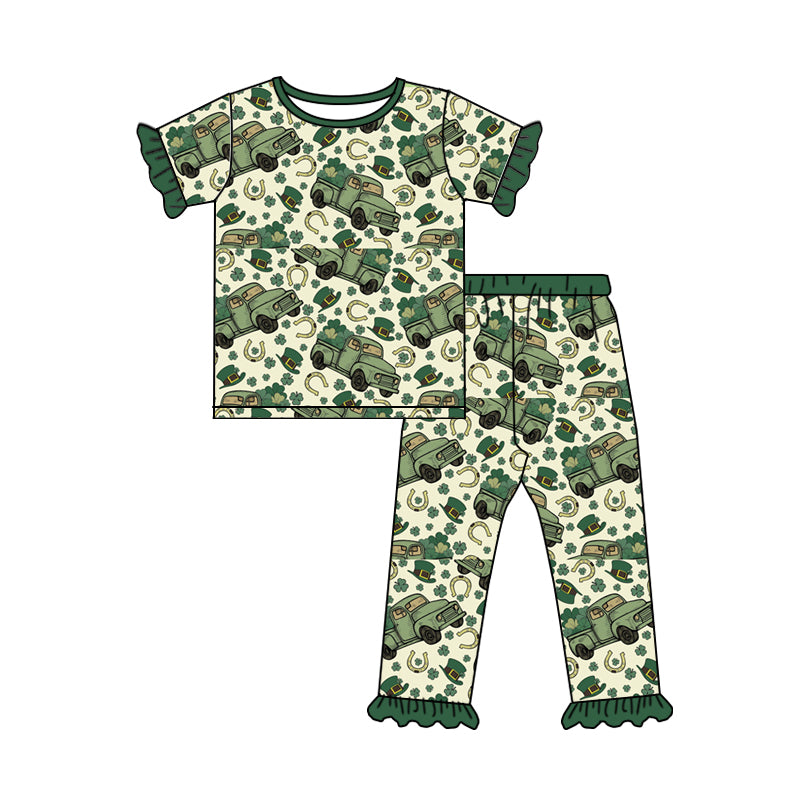 Baby Girls Short Sleeve St Patrick Day Cars Tee Shirt Pants Pajamas Clothing Sets Preorder(moq 5)