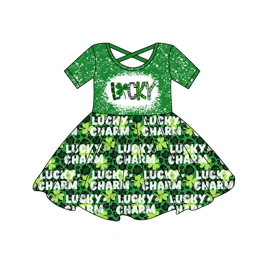 Baby Girls St Patrick Day Lucky Short Sleeve Knee Length Dresses Preorder(moq 5)